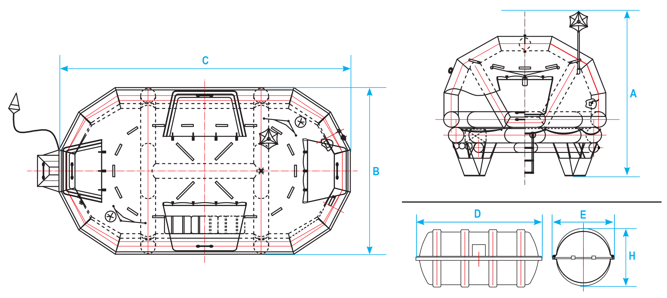 Balsa LALIZAS SOLAS OCEANO,TOB Tipo autoadrizable,100prs,canister (B) | 600 | 100 | 3400mm | 5380mm | 11090mm | 2095mm | B | 895mm | 995mm |
